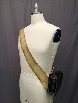 Tan, Leather, Solid, Wide Leather Baldric, Tan Leather, Over Shoulder With Attached Black Leather Pouch, Good Condition