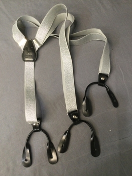 Grey, Black, Taupe, Elastic, Leather, Stripe, Individual Button Tabs, Adjustable, Good Condition