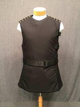 Modern, Black, Canvas, Nylon, Solid, Round Neckline, Stiched Shoulders With Gold Piping Detail, Chest Snaps, Center Zipper, 3 Side Buckles, Vent Side., Good Condition