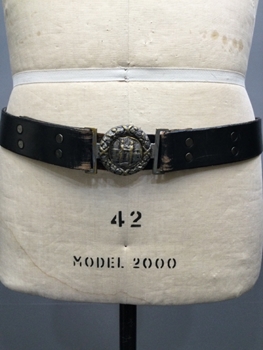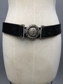 Black, Leather, Constable Belt, Round Silver Buckle And Velcro Closure, Good Condition
