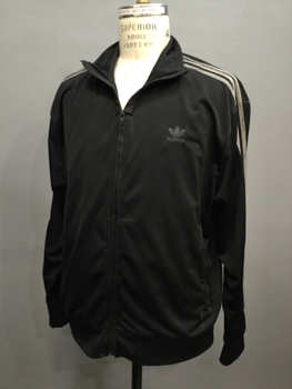 Adidas, Black, White, Polyester, Cotton, Track, sport, zipper front, lower welt pockets, raglan sleeve, ribbed cuffs, ribbed collar, ribbed hem, three stripes Down sleeve, Adidas log on left chest