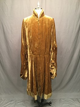 RENN, Tan, Camel, Golden Brown, Crushed Velvet, Solid, Stand Collar, Center Front Opening With Hook Closures, Wide Sleeves, houppelande,, Good Condition