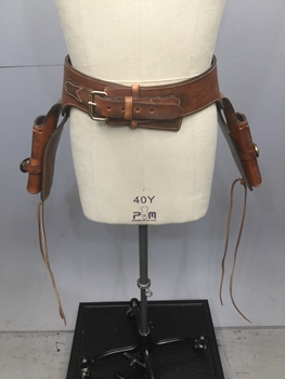 WESTERN, Brown, Leather, Stitched, Western Style Gun Slinger Belt. Cartridge Holders And 2 Gun Holsters., Good Condition