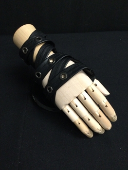 Devil Fashion, Black, Plastic Leather, Metal, Faux Wrapped Bracelet/ Gauntlet, Half the "Wraps" Have Gunmetal Eyelets, Closes
