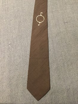 1960, Brown, White, Polyester Blend, Circle, Neck Tie With Circle Medallion, Good Condition