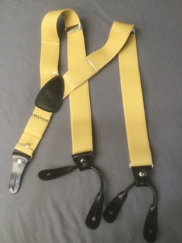 Yellow, Leather, Elastic, Solid, Adjustable, Button On, straps have been shortenned in back, Fair Condition