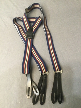 Light Blue, Navy , Tan, Elastic, Leather, Stripe, Individual Button Tabs, Adjustable, Stretchy, Good Condition