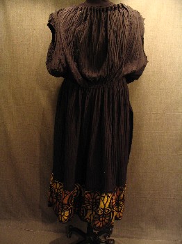 Black, Gold, Bronze, Rayon Blend, Cotton Blend, Solid, Stenciled, Men's Sleeveles Chiton, Fortuni Pleated, Gathered Boat Neck, Elastic Waist, 10" Jaquard Border With Gold And Bronze Stenciled Pattern, Good Condition