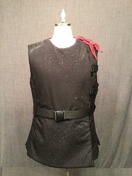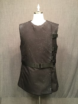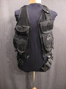 Modern, Black, Canvas, Nylon, Solid, Splattered, Round Neckline, Stitched Shoulders, Chest Snaps, 3 Side Buckles, Center Front Zipper, Vent Side, Distressed Splattered, Distressed