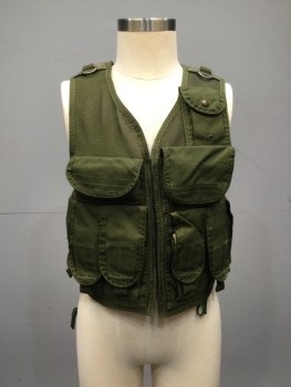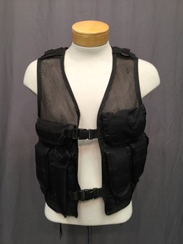 Black, Mesh, Nylon, Solid, Vest, Multiple Pockets, Good Condition
