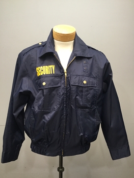 Modern, Navy, Yellow, Nylon, Polyester, Letter, Solid, M, Security, Security Officer, Windbreaker, Jacket, "SECURITY" Written On Right Front And Back, Collar, Gold Buttons, Gold Zippers, Badge Placement Reinforcement, Epaulette Straps, Two Button Chest Patch Pockets, Inner Left Breast Pocket, Side Seam Zipper Vents, Adjustable Button Cuffs, Elastic Waist, "All's Well That Ends Well", Good Condition