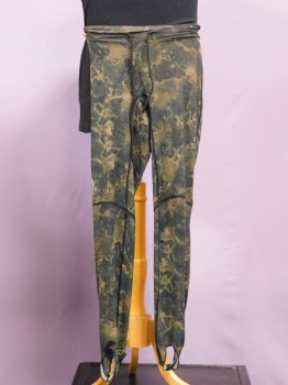 Mako, 20th Cent, Green, Tan, Brown, Nylon, Spandex, Abstract, Camouflage, Leggings, Stirrup, Gusset, Pull On, Drawstring, Rash Guard, Mako written on R leg., Good Condition