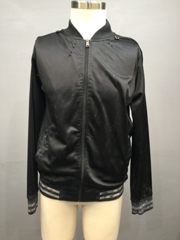 Black, White, Polyester, Nylon, Knit, Stripe, Zip Front, Front Welt Pockets, Ribbed Collar and Cuffs, Good Condition