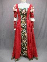 Red, Green, Gold, Velour, Floral, Square Neckline, CF Insert w/ Multi color Florals on Black Background, Paned Sleeves With Cream Lace Overlay, Cream Ruffled Lace Cuffs, Good Condition, Much Ado About Nothing 2024