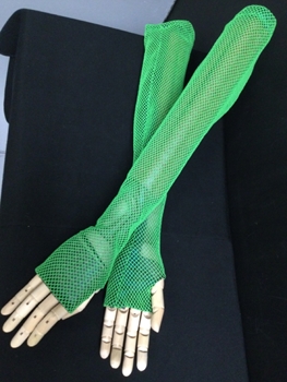 Green, Black, Blue, Netting, Mesh, 4" Across Palm, Fingerless, Thumb Hole, 24" Long, Good Condition