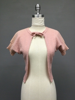 1950s, Pink, Wool, Knit, Cardigan, Ties At Center Front Neck, Short Sleeved, Ribbed at Cuff and Waistband, some discoloration on sleeves, Fair Condition